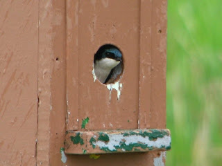 Post Script... A couple of people have commented on the fact that they have never seen a duck in a tree. Several ducks do nest in tree cavities including Buffleheads, Wood Ducks, Goldeneyes and Mergansers. They will also make nests in man-made boxes. Here is a You Tube Video of Wood Ducklings leaving a box. These ones do not have far to fall, but in the forest they may have to make a 40 foot drop to the ground and then follow their mother to water. This will be a treacherous journey for the ducks I saw.