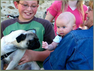 The third youngest member of our extended family, 11 week old Cassy is in the arms of her grandmother, the girl on the left in the first picture. She is getting acquainted with Samuel's dog Max. Cassy is blessed with an immediate and extended family who love her and who will participate together in raising her. Another cousin in this family is raising a young child who has been in several foster homes and has had no family connection or security. It is taking time for him to develop trust and the ability to relate to others. She and her husband are special people indeed!